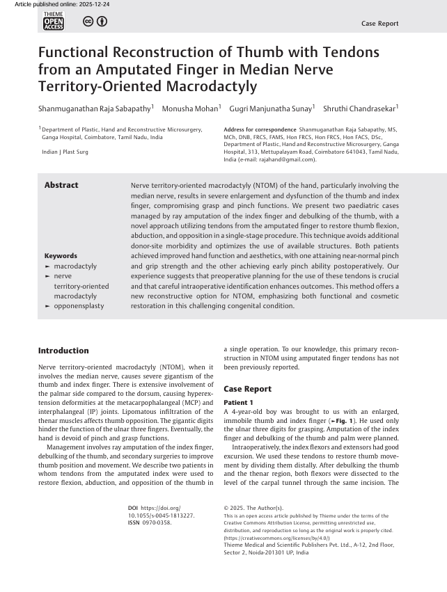 Nerve territory-oriented macrodactyly (NTOM) of the hand, particularly involving the median nerve, results in severe enlargement and dysfunction of the thumb and index finger, compromising grasp and pinch functions